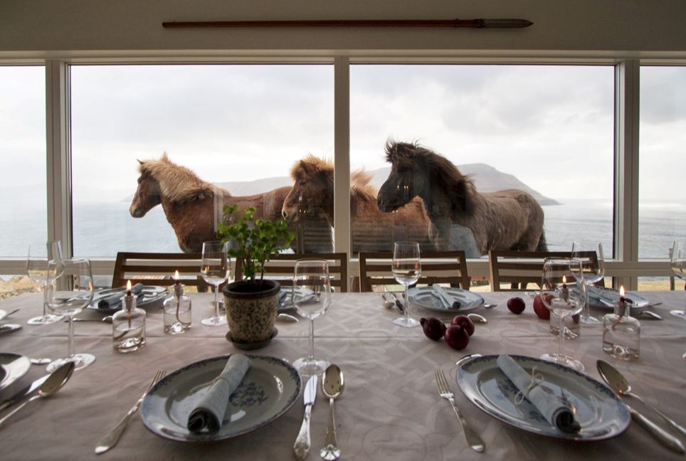 Bij Anna & Óli’s restaurant treedt u met uitsluitend lokaal geproduceerde gerechten en bier volledig buiten de begane paden. Uw mobiele telefoon laat u bij binnenkomst achter in de hal. Dit is puur genieten op de authentieke Faeröer Eilanden. Met lokaal entertainment en soms een nieuwsgierige gast die toekijkt hoe u geniet van de rust.